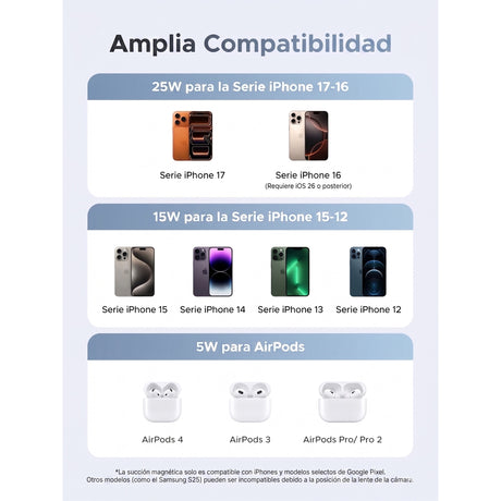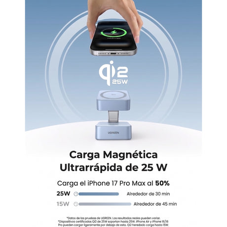 UGREEN Qi2 25W MagFlow 2 en 1 Cargador MagSafe Inalámbrico para iPhone 12 al 17 y AirPods