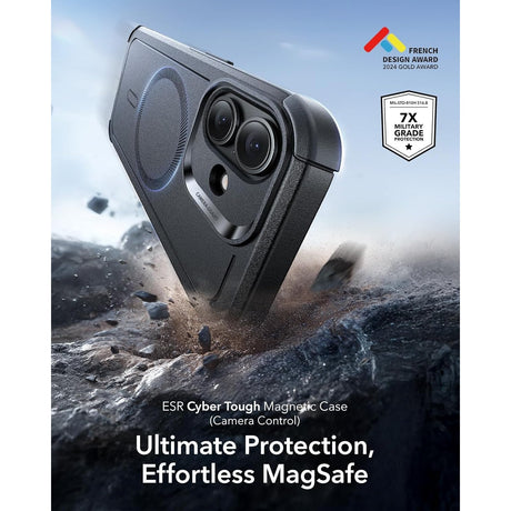 ESR iPhone 17 Cyber Tough Magnetic Case con MagSafe y Control de Cámara Protección Grado Militar 7X