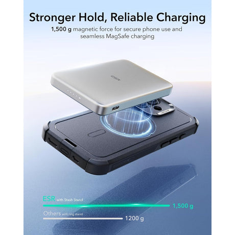 Es una excelente power bank para iPhone. El imán es fuerte y la mantiene en su lugar siempre. El stand es muy útil. La recomiendo.