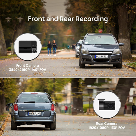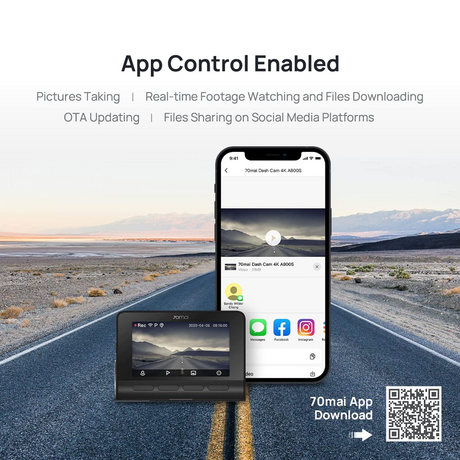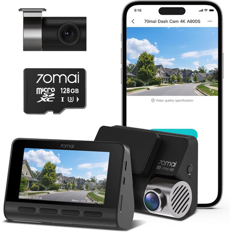 70mai Dash Cam 4K A800S Grabación Dual para Carro WiFi ADAS + Cámara Trasera RC06 + 128GB MicroSD