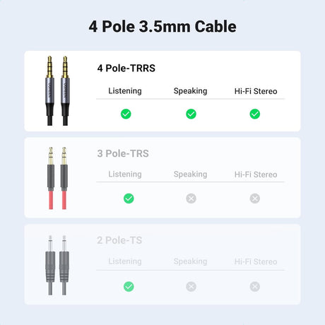 UGREEN Cable de Audio de 3.5mm trenzado de 4 polos Hi-Fi TRRS Jack Blindado Macho a Macho 1 Metro