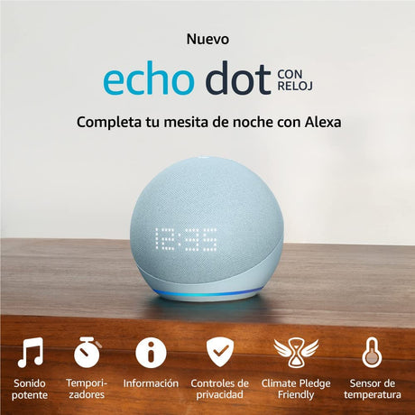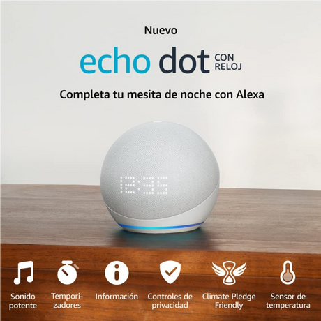 Echo Dot con Reloj (5.ª generación) | Parlante inteligente con reloj y Alexa