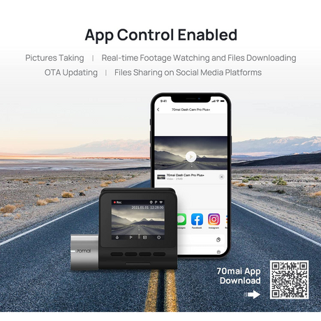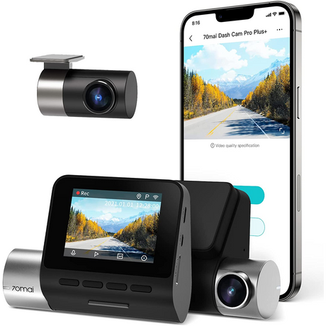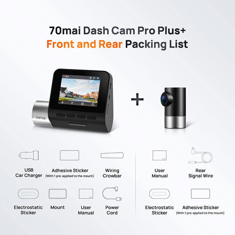 70mai Dash Cam Pro Plus+ A500S 2.7K Cámara Frontal + Trasera para Carro con WiFi y GPS integrado