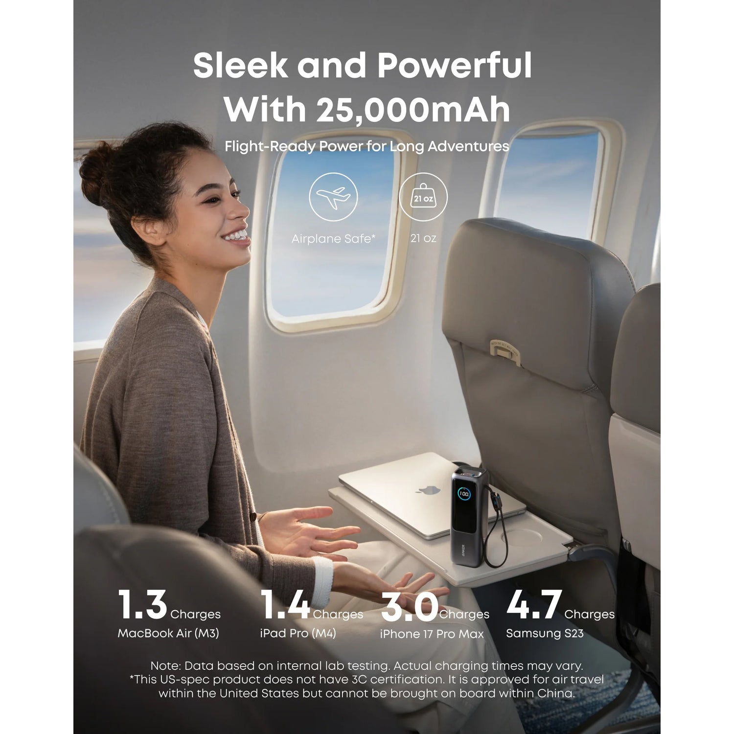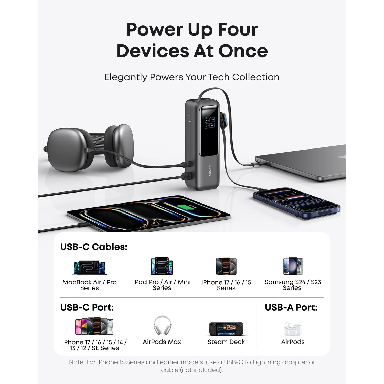 Anker Power Bank 25,000mAh 165W con Cable Integrado y Retráctil