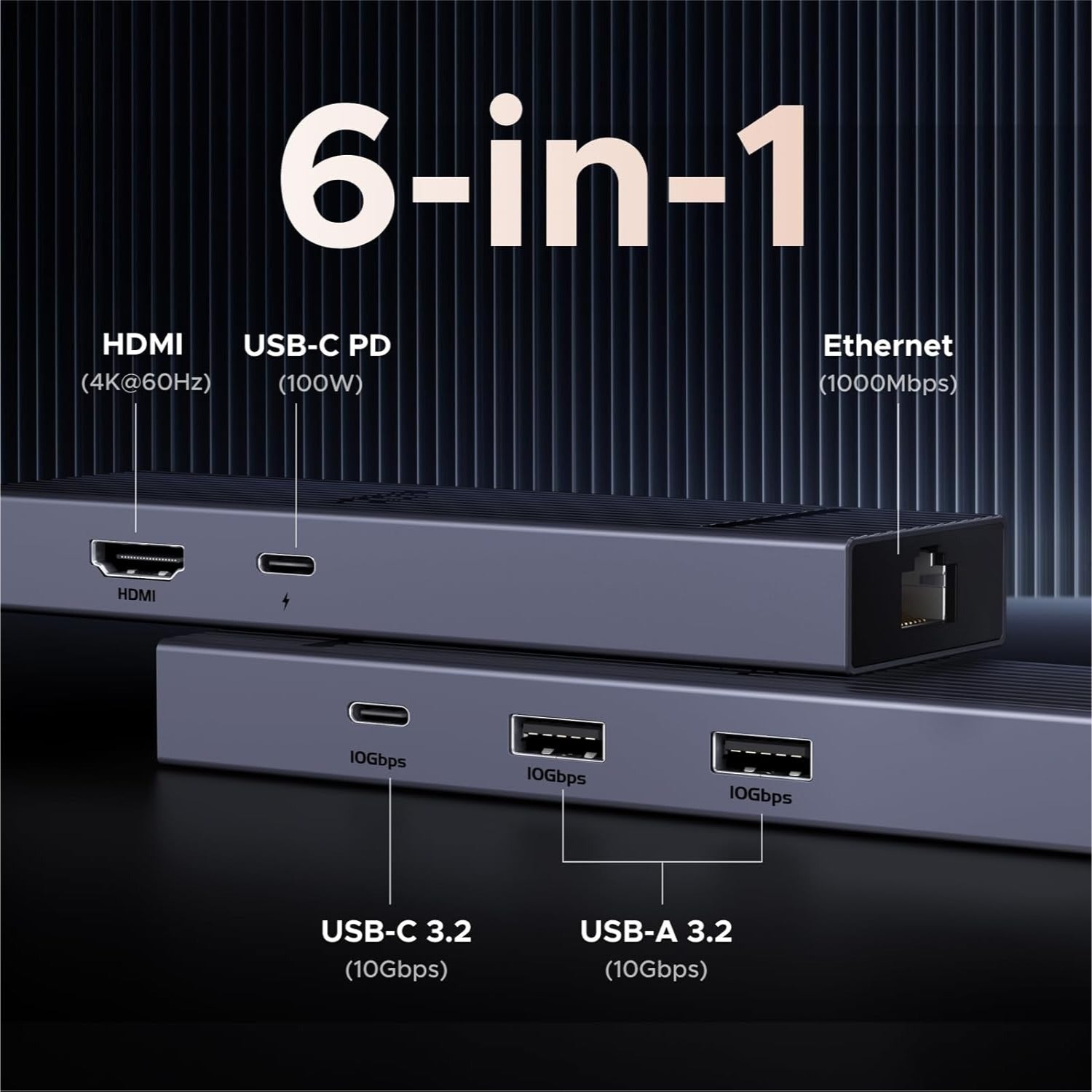 UGREEN Revodok Pro HUB 6 en 1 USB-C Gigabit Ethernet con 4K 60Hz HDMI 100W Puerto PD