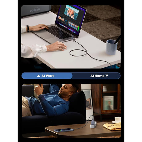 UGREEN Nexode 45W GaN Cargador con Cable USB-C Retráctil y 2 Puertos