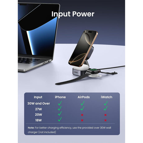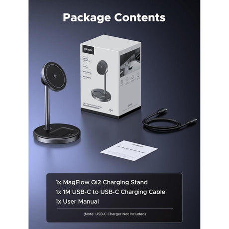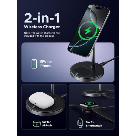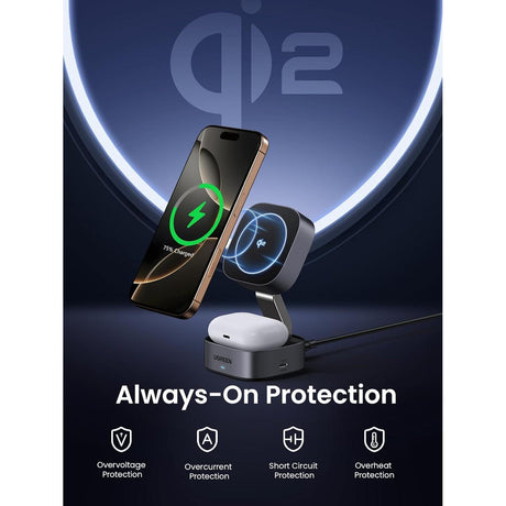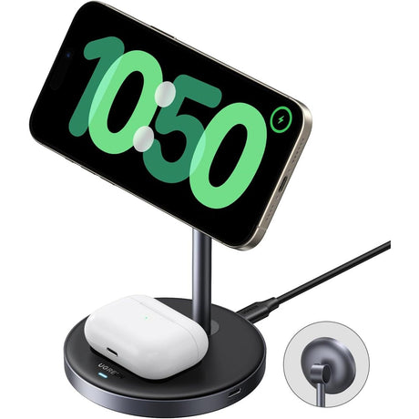 UGREEN Qi2 15W Cargador MagSafe Inalámbrico 2 en 1 Stand para iPhone 12 al 16 y AirPods
